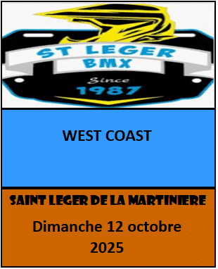 Ajouter au panier FINALE DU TDBMX – GUJAN MESTRAS – SAMEDI 11 OCTOBRE 20250,00€ Ajouter au panier FINALE COUPE DE GIRONDE- GUJAN MESTRAS – DIMANCHE 12 OCTOBRE 20250,00€ Ajouter au panier WEST COAST – St LEGER – DIMANCHE 12 OCTOBRE 202511,00€